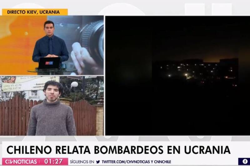 Recién pasadas las 01.09 horas chilenas, poquito más de una hora después de que Vladimir Putin finalizara su famoso anuncio en cadena nacional rusa y comenzara la invasión de sus soldados a Ucrania, en Chilevisión se contactaron con Felipe Albornoz, precisamente un chileno residente en Kiev, para conocer cómo se estaba viviendo el minuto a minuto en la capital ucraniana.
