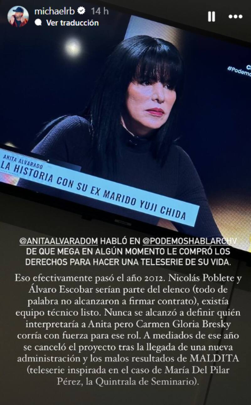 Por Guido Macari MarimónMichael Roldán contó por qué no se concretó serie de Mega sobre Anita Alvarado y qué actriz “corría con fuerza” para su papel