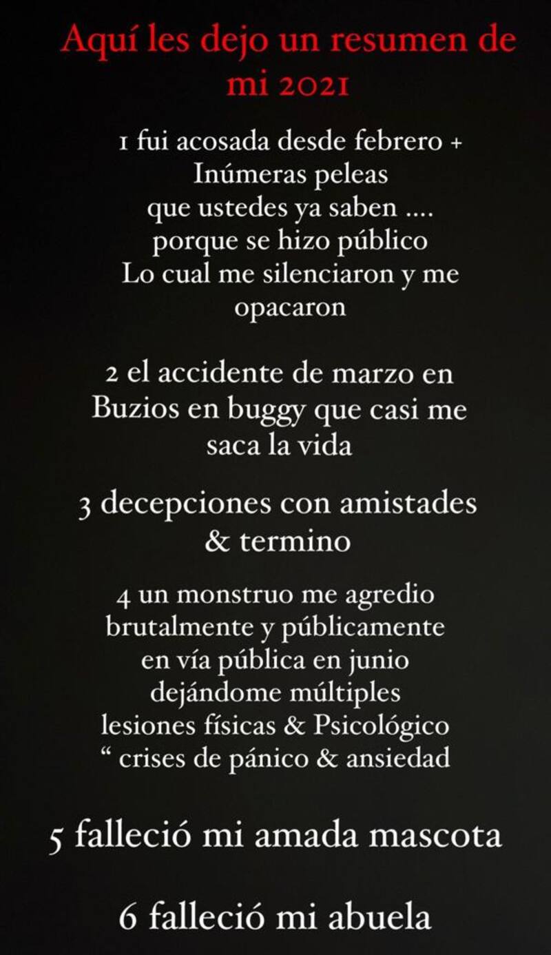“Aquí les dejo un resumen de mi 2021″, partió escribiendo la ex participante de reality.