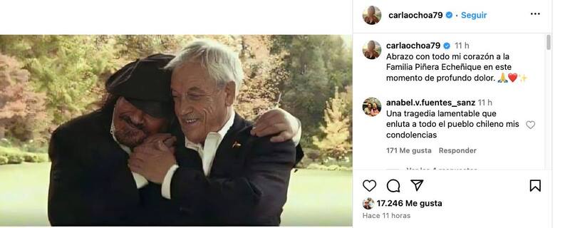 “Abrazo con todo mi corazón a la familia Piñera Echenique en este momento de profundo dolor”, escribió a través de su cuenta de Instagram la ex pareja del Negro Piñera.