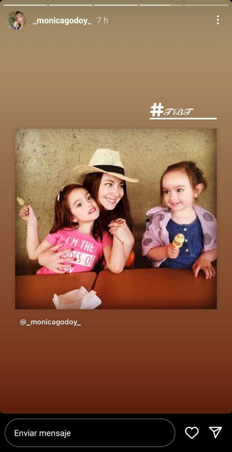“Jueves de #TBT”, escribió posteando una foto de ella cuando formó parte de la telenovela Hijos del Monte en 2008. Posteriormente compartió registros familiares con su padre y otros con sus hijas.