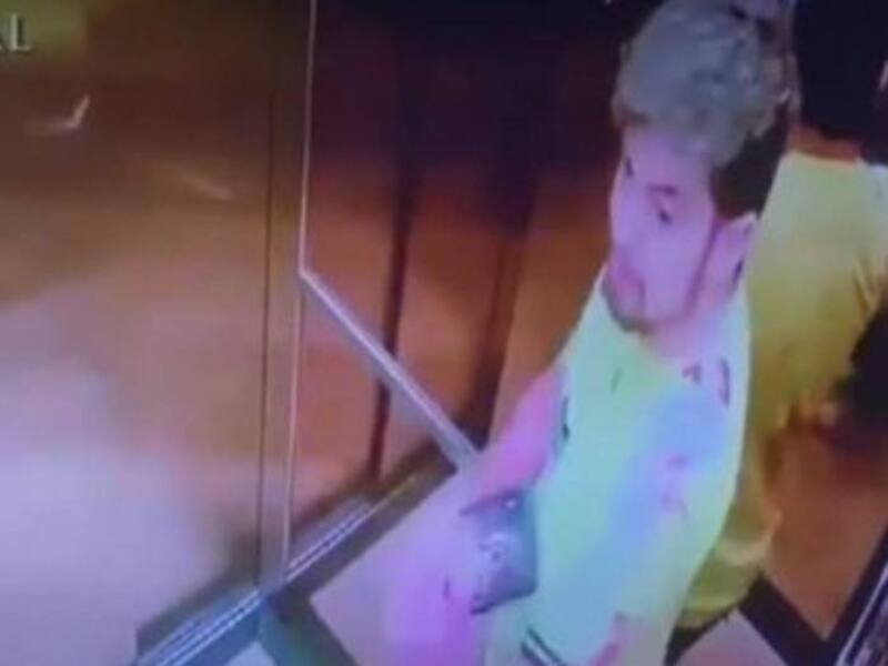 En la imágenes, el joven aparece en solitario mientras descendía en el ascensor. Con su polera ensangrentada, procede a tomarse una selfie.