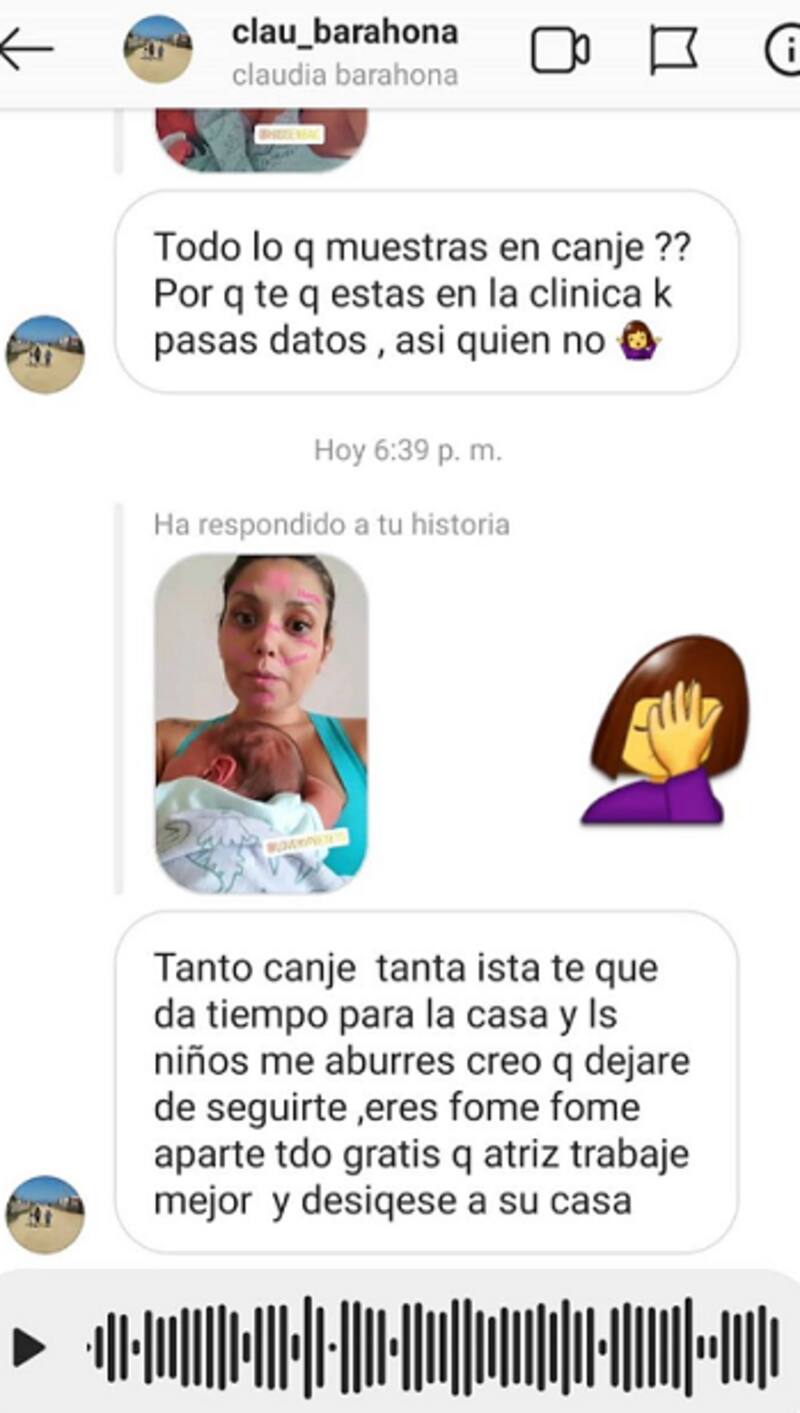 Por lo mismo, la ex bailarina habló a través de una historia de Instagram: "Subí ese mensaje (imagen anterior) porque he recibido varios mensajes así como este, diciendo que les molesta que uno haga canje".