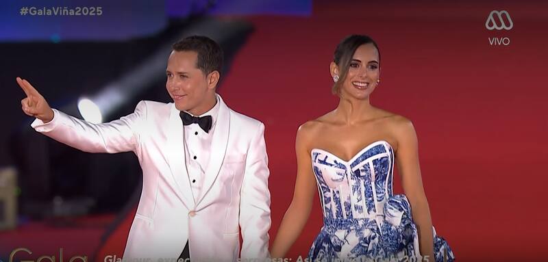 La esposa de Karol Lucero, Fran Virgilio, desfiló por la alfombra roja de la Gala de Viña utilizando un diseño de Makarena Montaner.