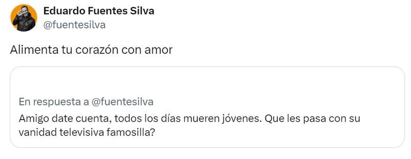 “Amigo, date cuenta, todos los días mueren jóvenes. ¿Qué les pasa con su vanidad televisiva famosilla?”, cuestionó el desconocido.