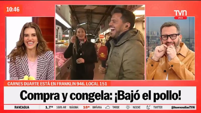 El notero continuó conversando con normalidad con la mujer, cuando Eduardo lanzó una particular broma en voz baja. “Alma me va a pedir chocolate y le voy a tirar una pata de pollo”, bromeó, haciendo reír a sus compañeros.