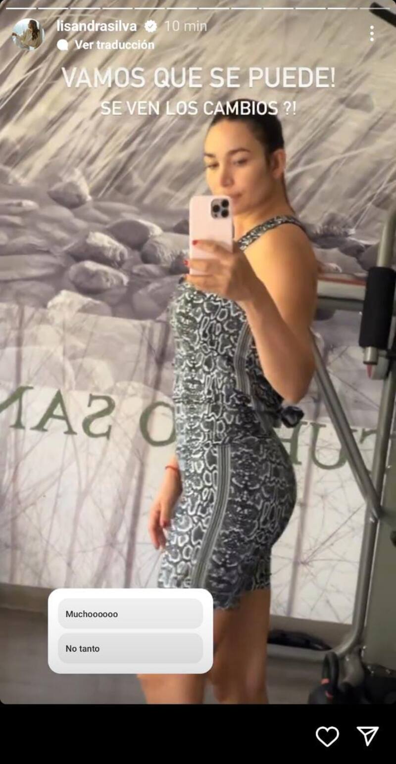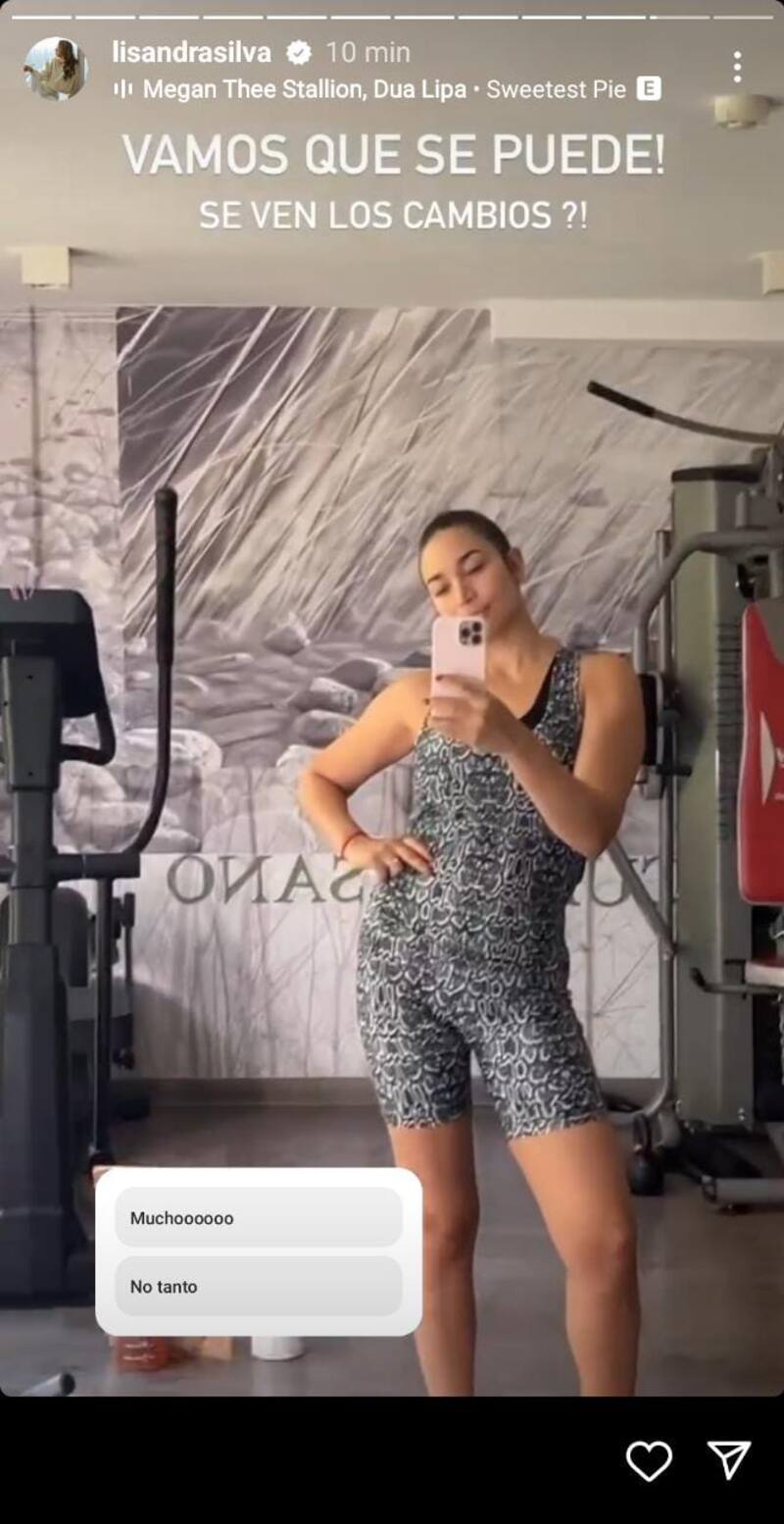 “Vamos que se puede! ¿Se ven los cambios?”, señaló en los registros posando con un traje apegado al cuerpo y realizando una encuesta para sus seguidores.