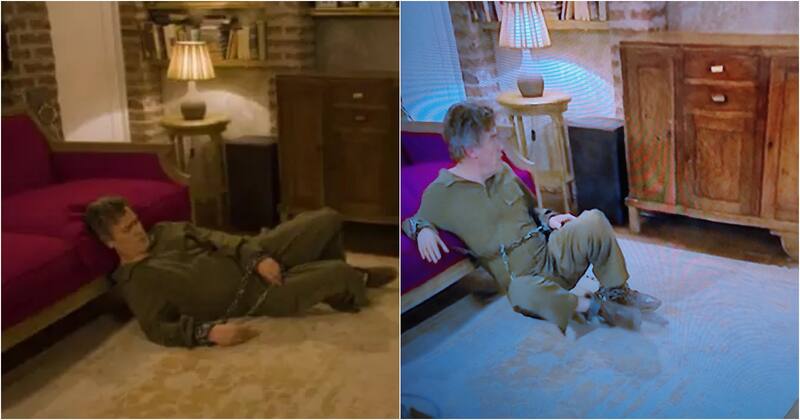 Tras la pérdida de consciencia, él se despertó con los brazos y piernas encadenados, y traía puesto un overol verde. Más tarde, ya en el adelanto, ella le dejó claro que ese será su “hogar” de aquí en más.