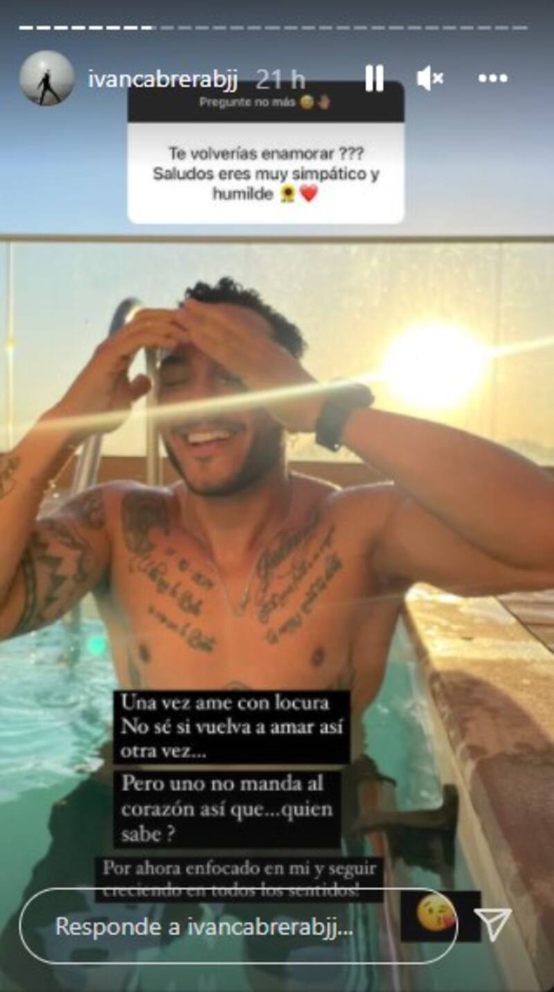 “Una vez amé con locura. No sé si vuelva a amar así otra vez… Pero uno no manda al corazón, así que… quién sabe? Por ahora enfocado en mí y seguir creciendo en todos los sentidos”, agregó, generando diversas reacciones.