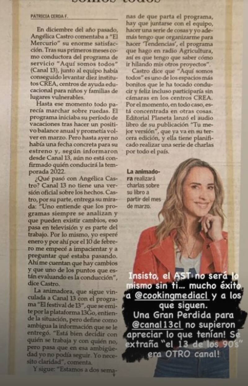 Siguen los coletazos tras la salida de Angélica Castro de Canal 13.