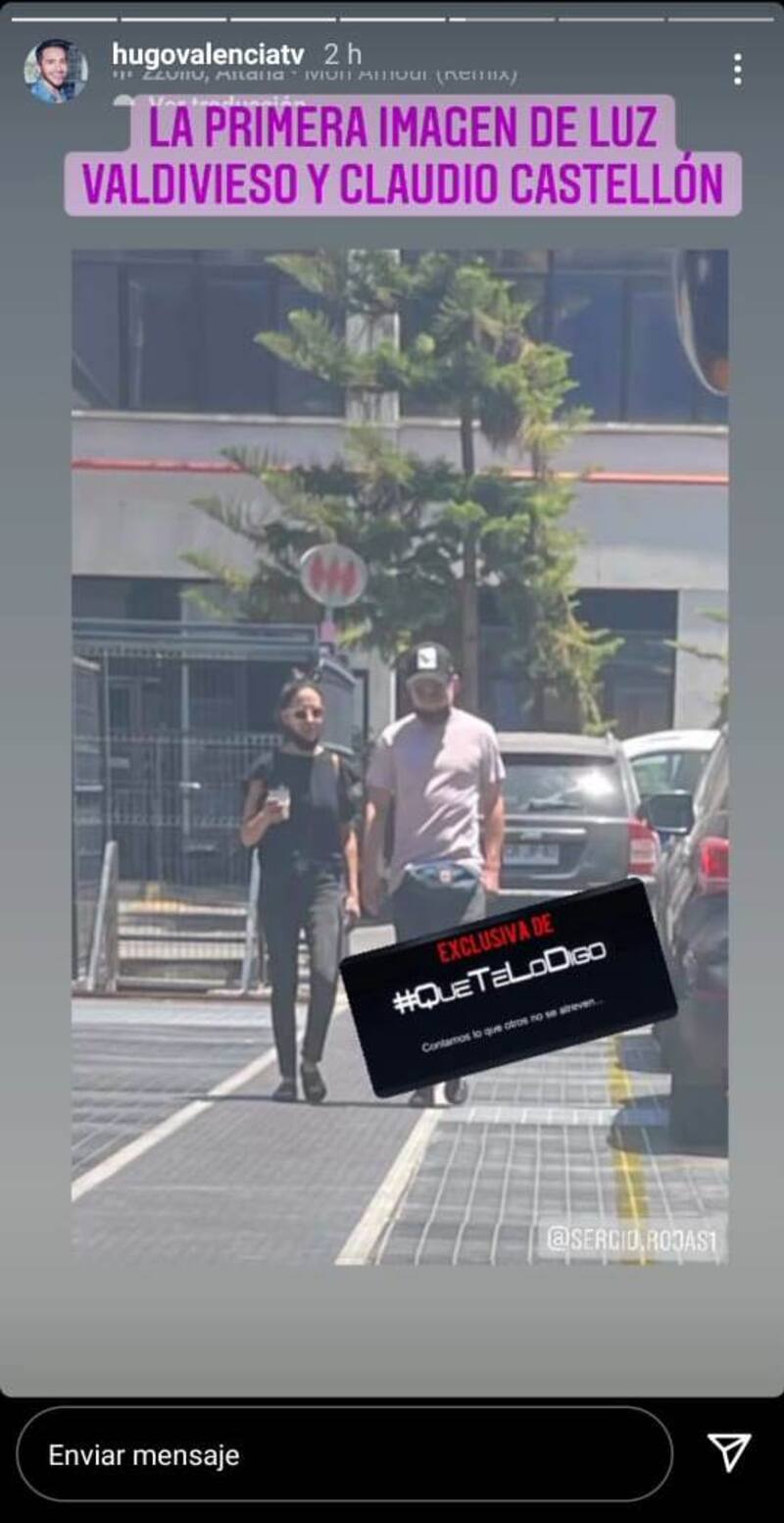 “La primera imagen de Luz Valdivieso y Claudio Castellón”, escribió Hugo Valencia compartiendo el registro donde se ven a los actores caminando juntos. Foto que se mostró en el programa pero que no se pudo ver nítidamente por problemas del internet, compartiendo el registro posteriormente en sus historias.
