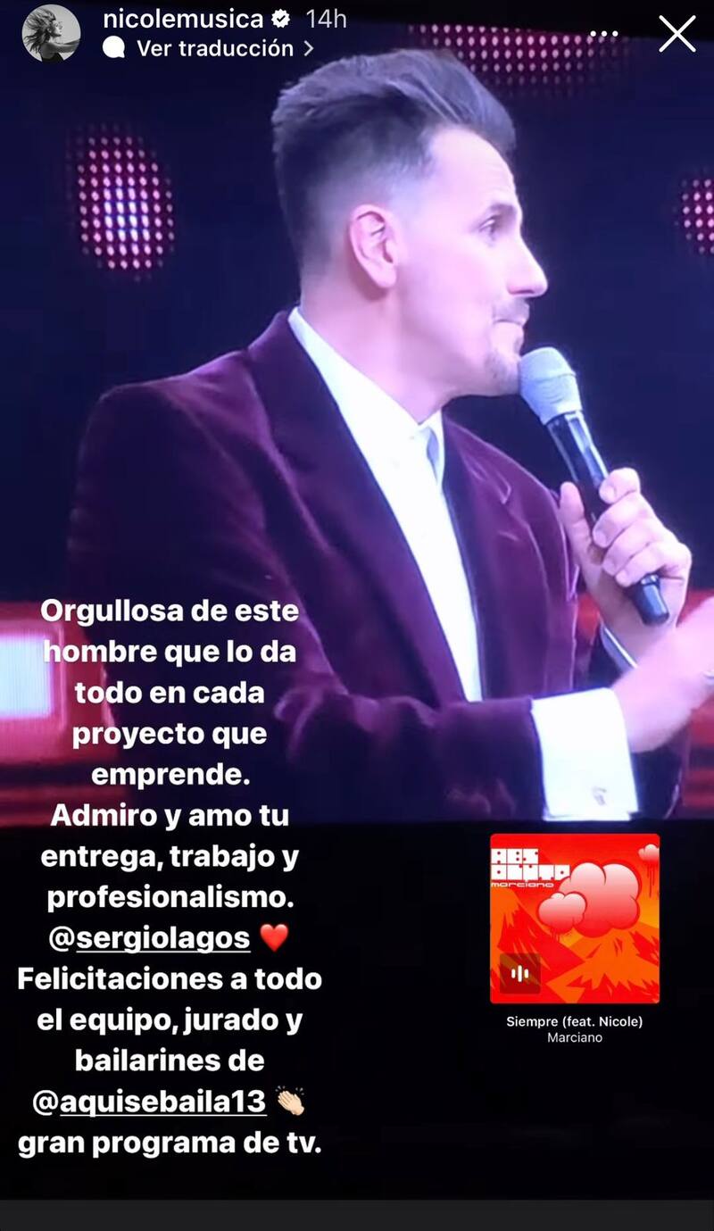“Orgullosa de este hombre que lo da todo en cada proyecto que emprende”, escribió la artista chilena en el formato de stories de la plataforma virtual.