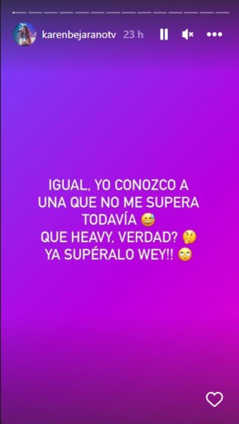 “Igual yo conozco a una que no me supera todavía. Que heavy, verdad? Ya supéralo wey!!”, arremetió Karen Bejarano generando diversas reacciones.