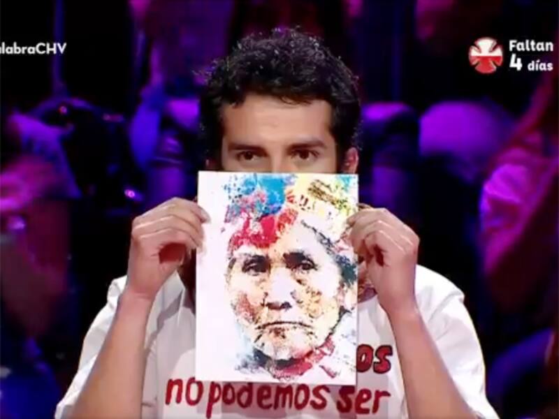 Claro, porque cuando Julián Elfenbein presentaba a los concursante y lo mencionó, él cubrió la mayor parte de su rostro con una acuarela de la comunera mapuche. La misma que ha sido absuelta dos veces por la justicia, tras ser acusada de haber reunido a una treintena de personas antes de que se produjera el incendio de la propiedad en el que falleció el matrimonio Luchsinger-McKay, en 2013.