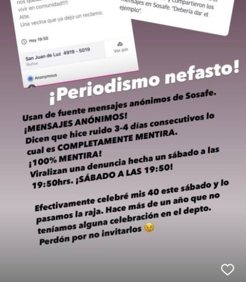 Junto con compartir diferentes imágenes de la celebración de su cumpleaños número 40, el rostro de CHV aclaró que el carrete fue a las 20.00 horas y que solo se celebró durante la tarde noche del sábado.