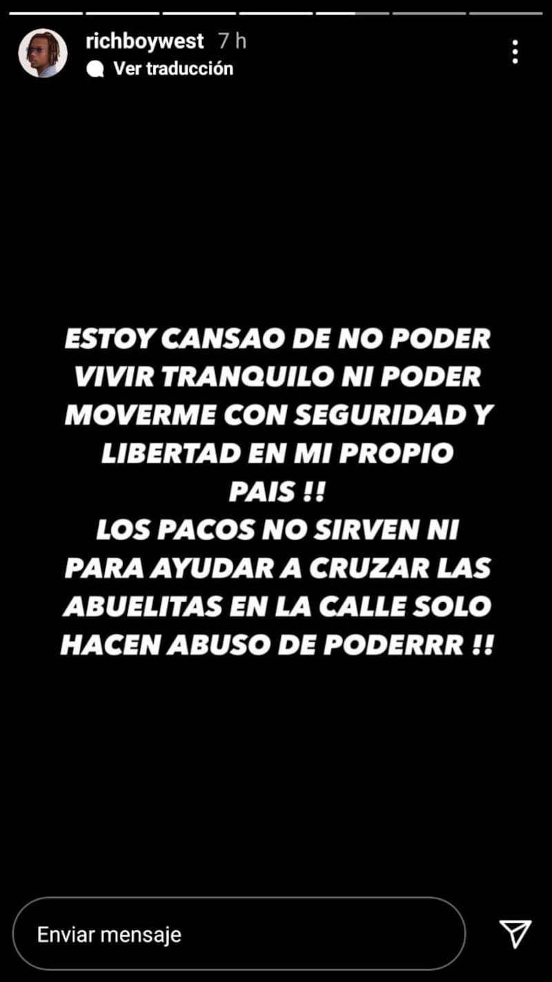 Posteriormente compartió un mensaje donde aseguró que la policía lo discriminó por su tono de piel. "Estoy cansado de no poder vivir tranquilo, ni poder moverme con seguridad y libertad en mi propio país", señaló.