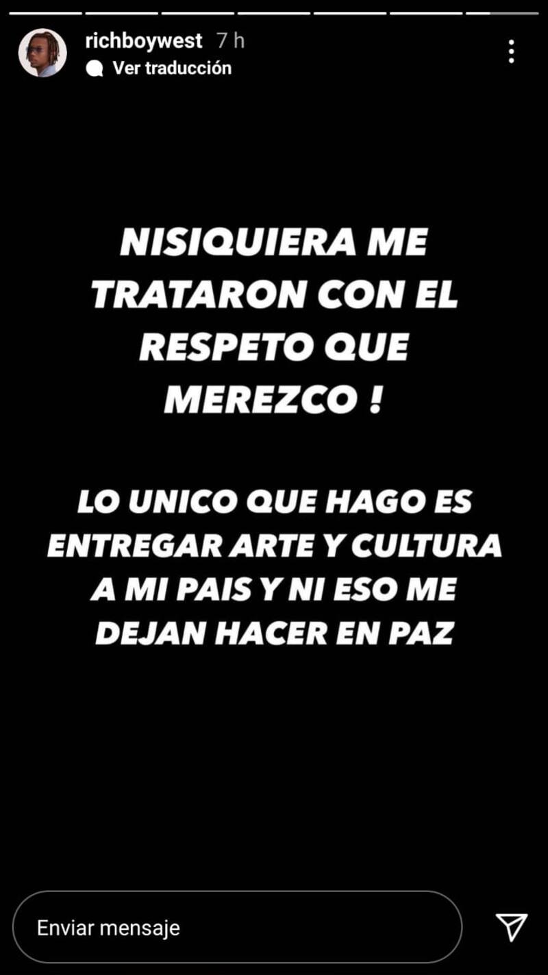 "Ni siquiera me trataron con el respeto que merezco. Lo único que hago es entregar arte y cultura a mi país y ni eso me dejan hacer en paz", agregó, demostrando su molestia en la web.