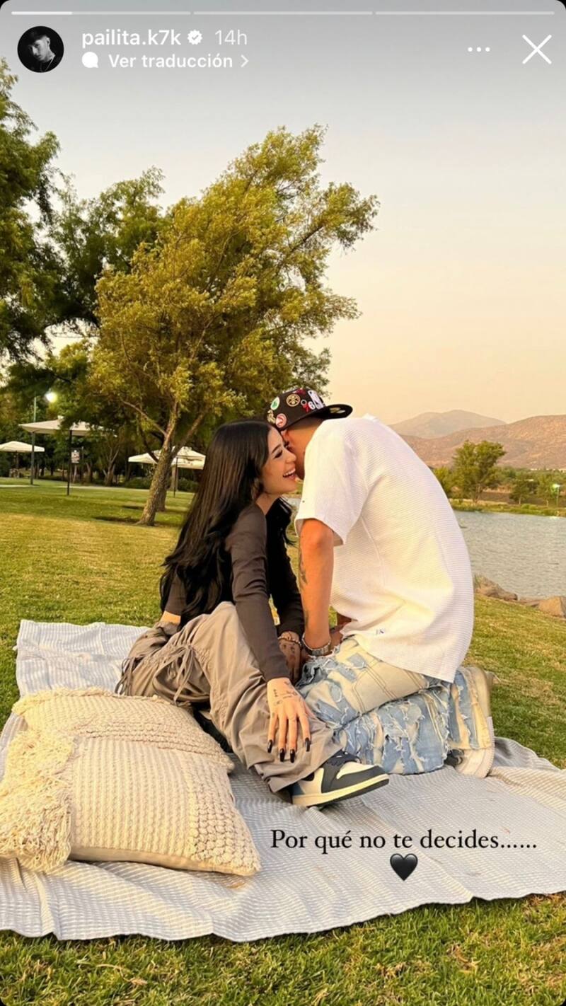 “Por qué no te decides…”, escribió el artista urbano en sus historias compartiendo una foto sentado en el pasto muy acaramelado junto a la tiktoker generando diversas reacciones sobre un supuesto romance pero aparentemente ambos se encuentran trabajando en el videoclip de una de sus nuevas canciones.