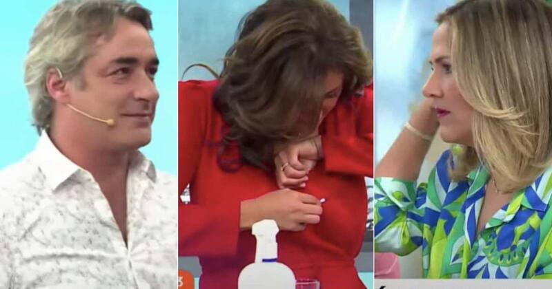 “Me voy a ir a cambiar”, avisó la conductora del Tu Día. Fue auxiliada por José Luis Repenning, Michell Adam y Gianfranco Marcone.