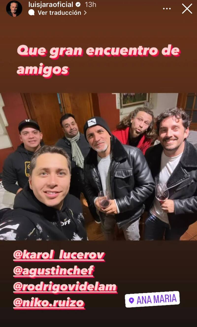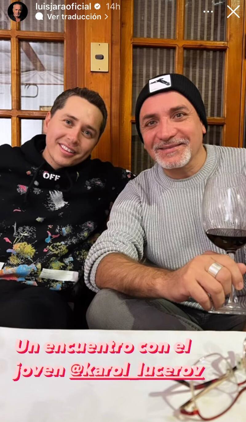 “Recordando buenos momentos. Qué buena tertulia la de esta noche”, escribió Karol en la plataforma virtual. “Un encuentro con el joven Karol Lucero”, agregó por su parte el cantante chileno, que por estos días se encuentra de visita en el país.