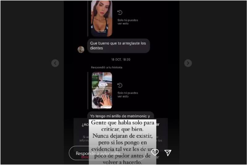Por Nataly Espinoza Ávila“Que bueno que te arreglaste los dientes...”: Aylén Milla expuso los fuertes mensajes que recibe de seguidora en Instagram