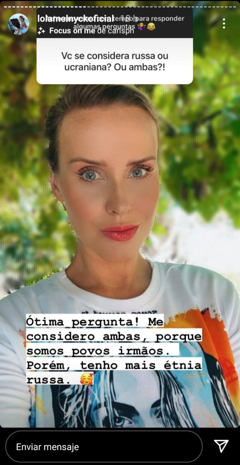 “Me considero ambas, porque somos hermanos y hermanas. Sin embargo, tengo más etnia rusa”, aclaró Lola Melnick en perfecto portugués, una de las tantas lenguas que habla.