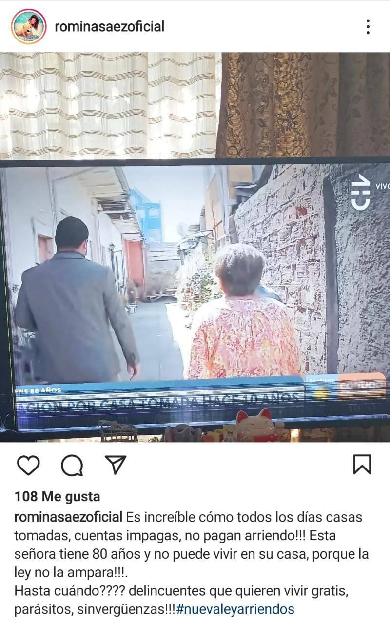 A través de su cuenta de Instagram la influencer compartió una foto de un reportaje de CHV donde contaban la historia de una familia que hace 10 años lucha por recuperar su casa, refiriéndose al tema en la red social.