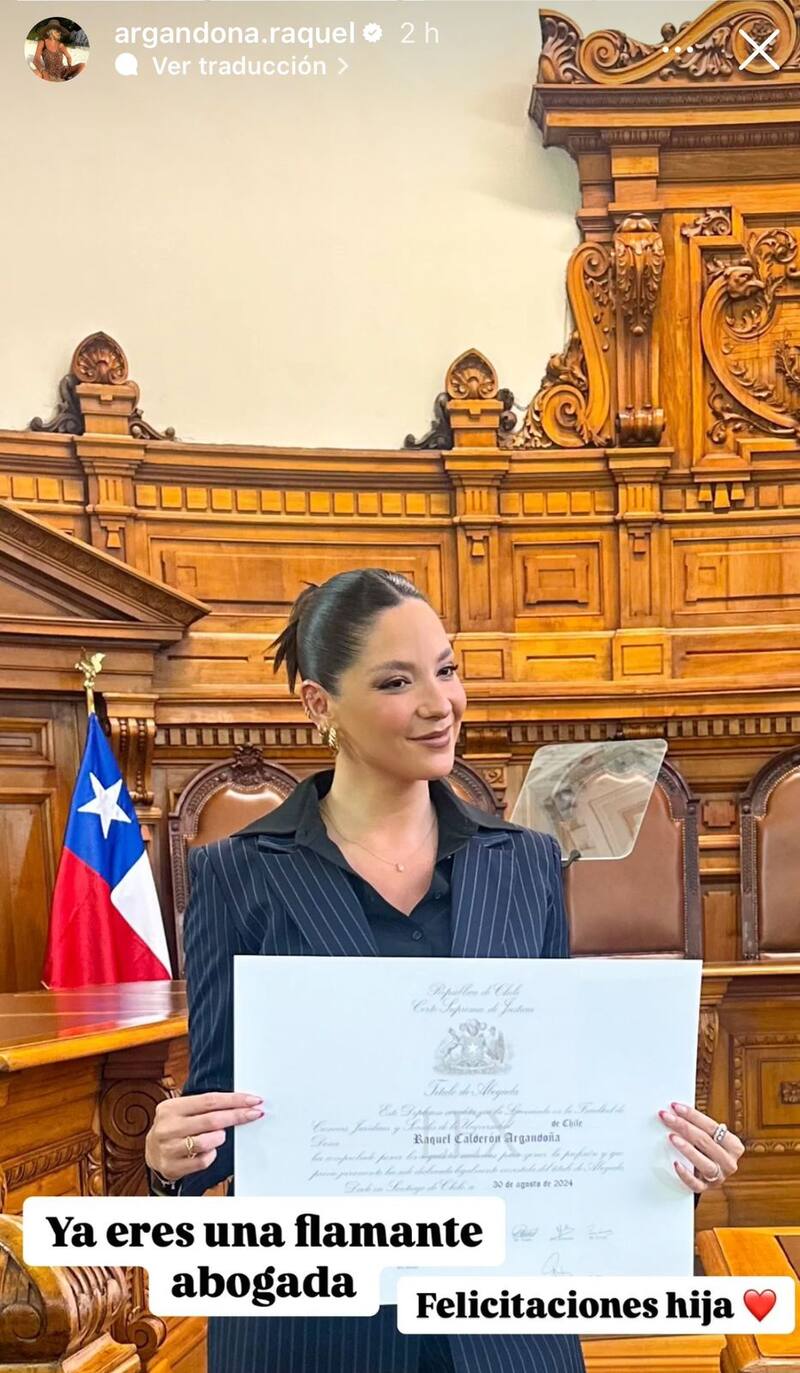 “Ya eres una flamante abogada. Felicidades hija”, escribió la Quintrala junto al emoji de un corazón.