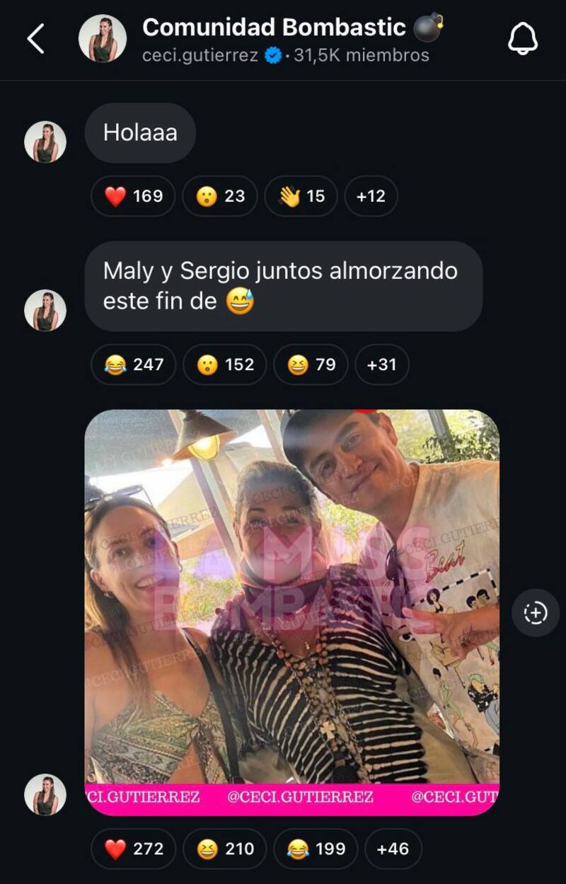 “Maly y Sergio juntos almorzando este fin de semana”, escribió Gutiérrez, en su canal de difusión de Instagram.