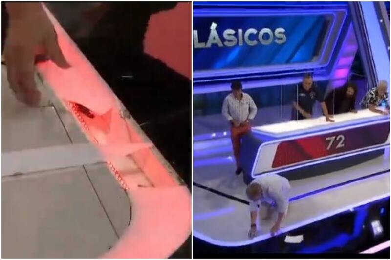 “Se pitearon la escenografía”, señaló entre risas el animador Martín Cárcamo mientras jugaban con la parte del estudio que salió volando tras las pisadas.