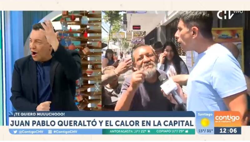 Todo comenzó cuando Juan Pablo Queraltó estaba haciendo un despacho en vivo desde la plaza de Puente Alto, conversando con algunas personas por la ola de calor que azotará a la capital.