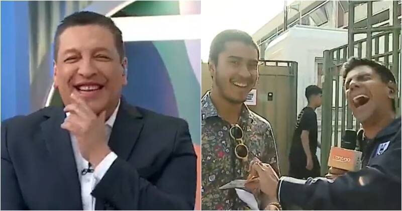 El notero comenzó a hablar con distintas personas que llegaban hasta el colegio para dar la prueba antes de ingresar a la universidad. Fue entonces que un detalle de uno de los jóvenes le llamó la atención.