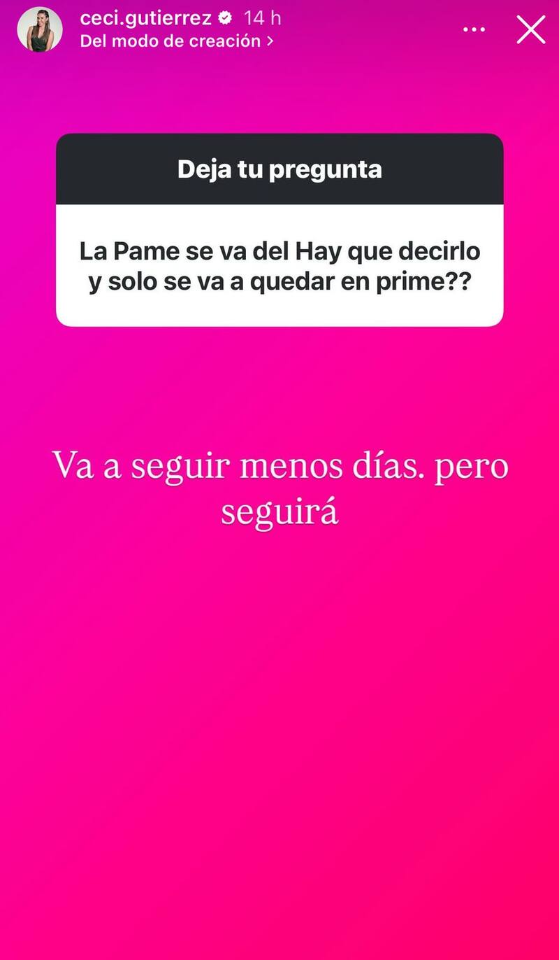 Pero eso no es todo, pues también le consultaron si definitivamente Pamela continuará en el programa, si se quedará sólo en la edición prime o si definitivamente se marchará.