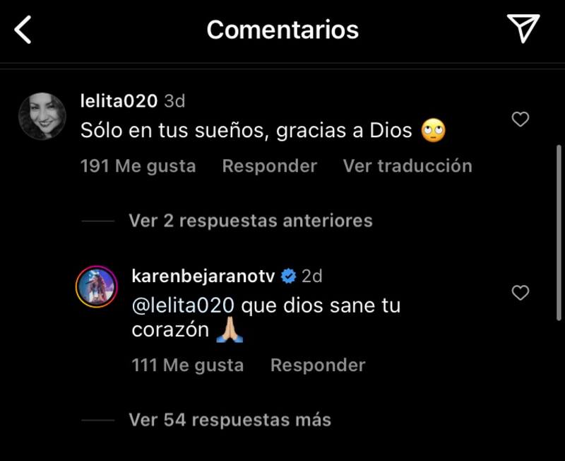 Karen entonces le contestó el comentario a la seguidora: “Que Dios sane tu corazón”, escribió simplemente.