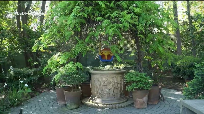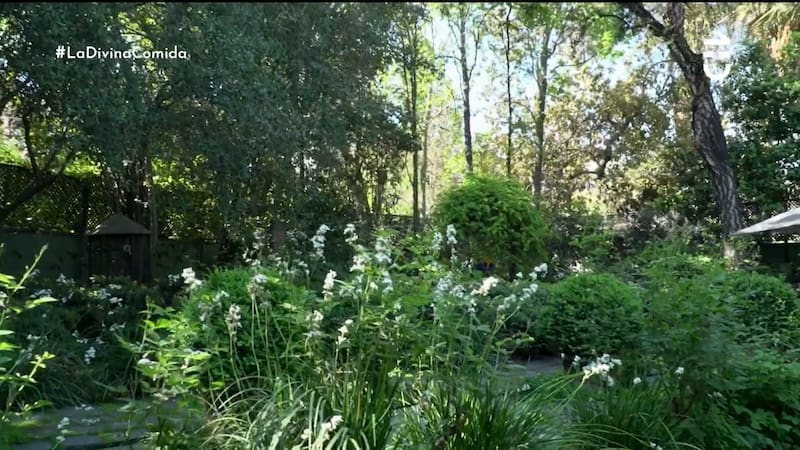 Tras el “divino quiz”, el escritor mostró el llamativo jardín de la casa, que Dueñas calificó como “selvático” al contar con muchas plantas y flores alrededor.