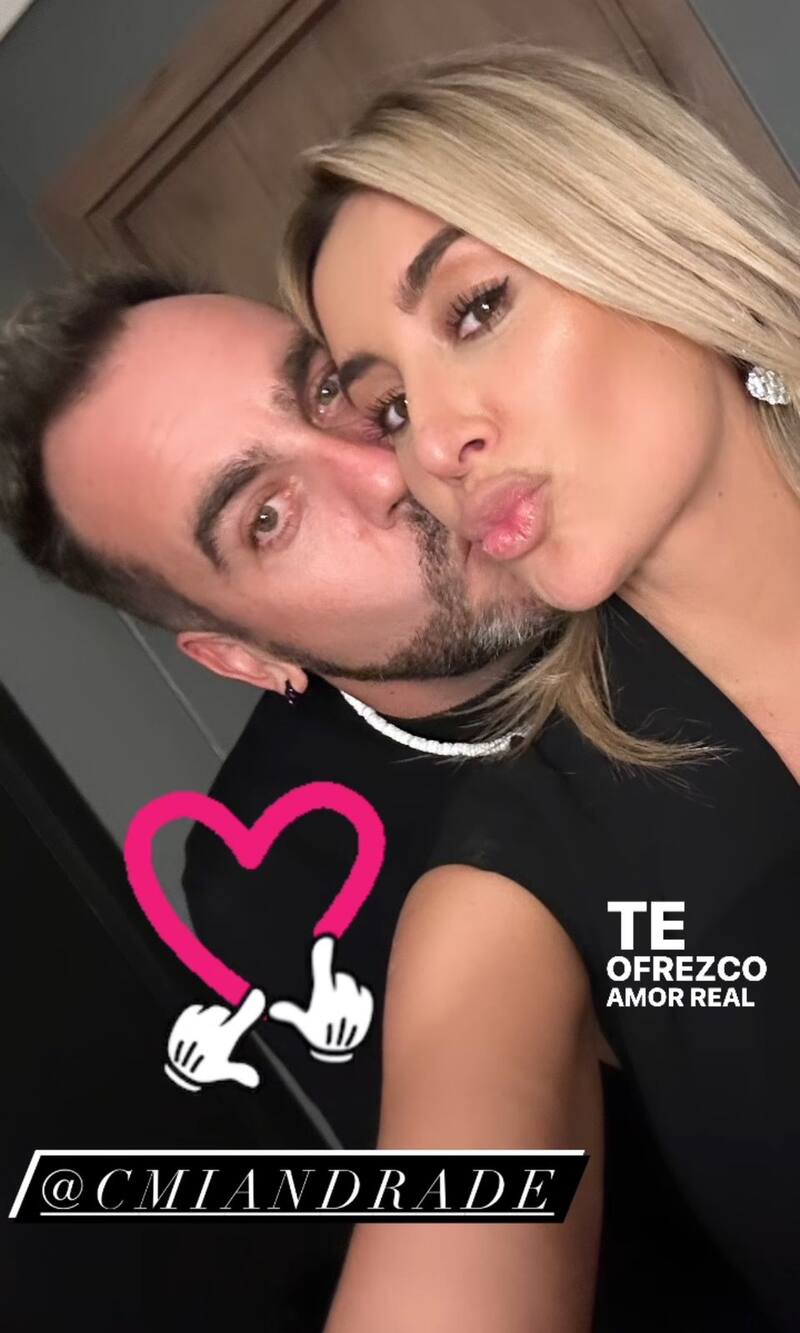 En la postal, ambos salen abrazados mientras él le da un beso en la mejilla. Además, acompañó la postal con la canción Milo J: “Te ofrezco amor real y un corazón sincero”.