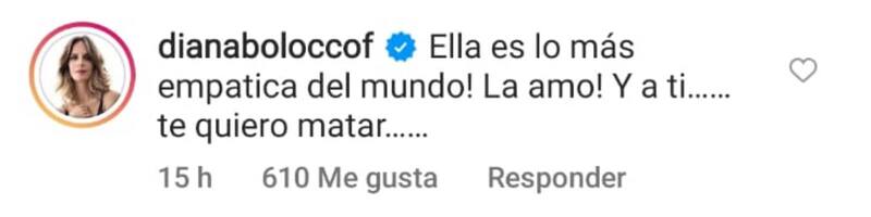 Entre otras reacciones que generó su publicación, destacó la de su esposa. “Ella (Gracia) es lo más empática del mundo. La amo. Y a ti... te quiero matar”, escribió Diana.