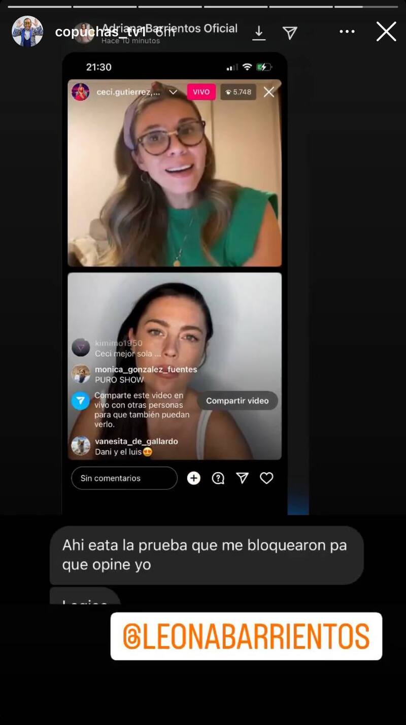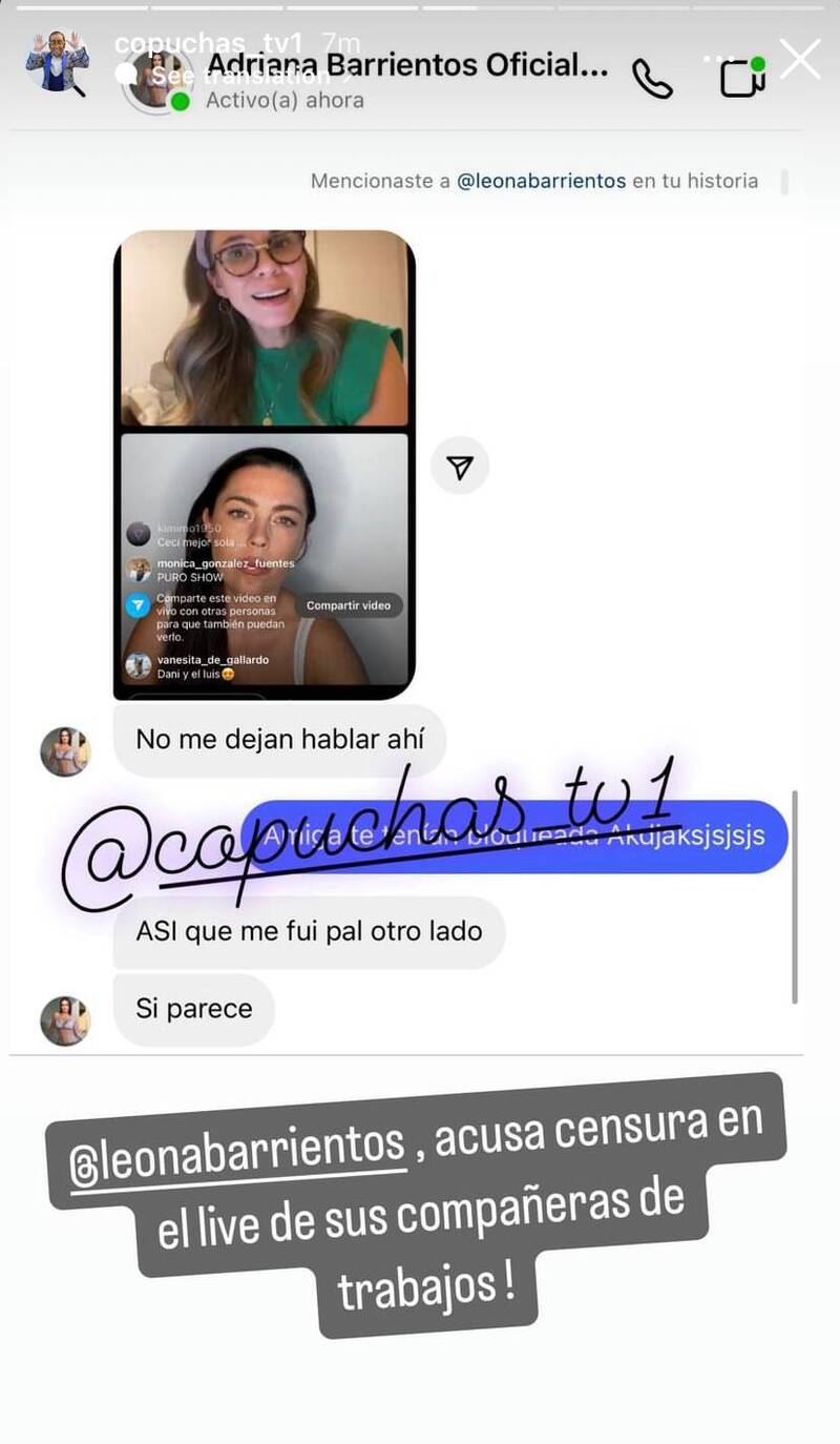 Todo esto comenzó cuando Adriana Barrientos trató de comentar en el chat del programa, pero al final no pudo, al parecer porque la moderadora de la transmisión le bloqueó los comentarios, así lo comentó al portal de @copuchas_tv1.