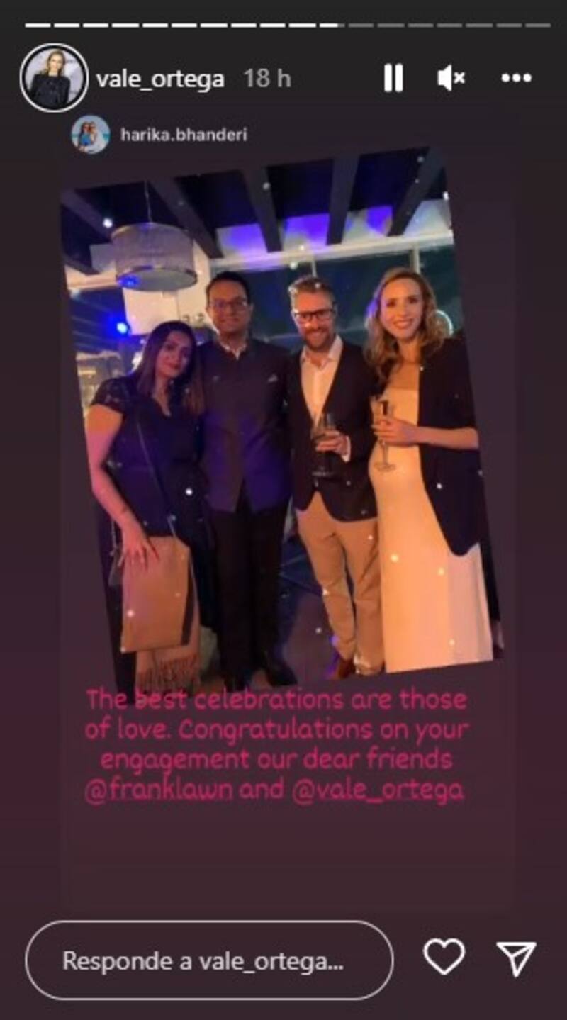 A través de sus historias de Instagram publicó diversos videos y fotos posando junto a sus seres queridos quienes se reunieron en un lujoso hotel para celebrar su reciente compromiso debido a que su pareja, Jonathan Lawn le pidió matrimonio.