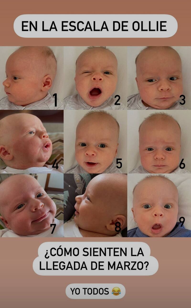 La periodista subió en las historias un tierno meme de sus gestos. "En la escala de Ollie, ¿Cómo sienten la llegada de marzo?", escribió junto a una imagen en el que salen nueve tiernas fotos del menor.