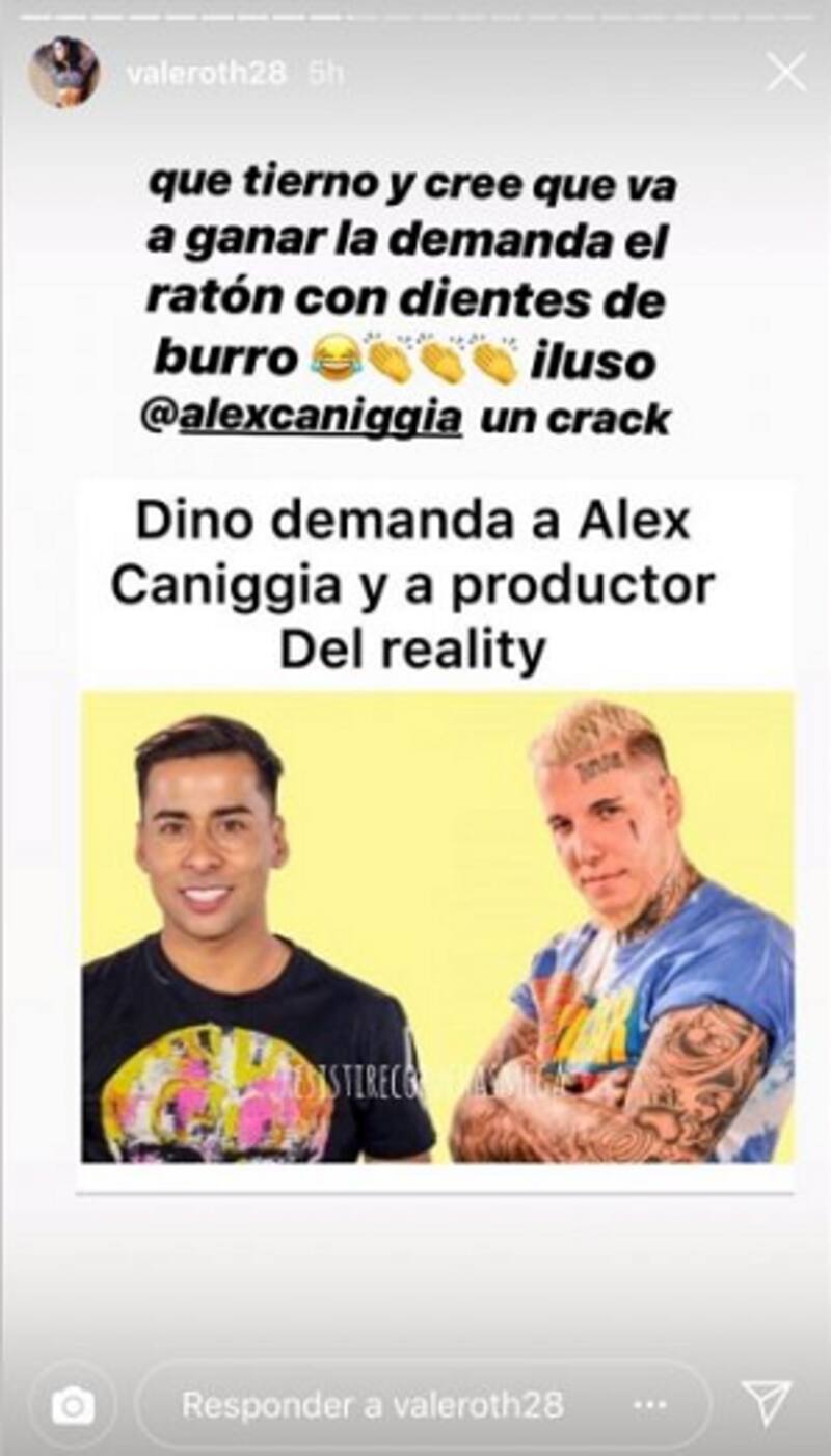 "Que tierno y cree que va a ganar la demanda el ratón con dientes de burro iluso @Alexcaniggia un crack", publicó en su Instagram la chica fitness.