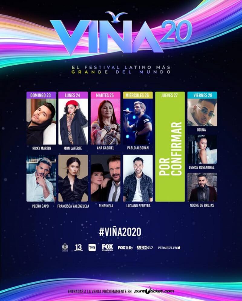 Sin embargo, la mañana de este lunes la organización del certamen musical realizó un comunicado donde se dieron a conocer los nuevos artistas confirmados y la programación oficial desde el 23 al 28 de febrero.