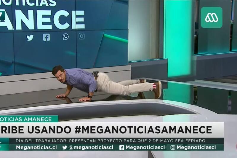 El actual conductor de noticias tuvo un distendido momento junto a Michelle Adam y se tomó el estudio de Mega para poner en práctica el movimiento frente a los televidentes.