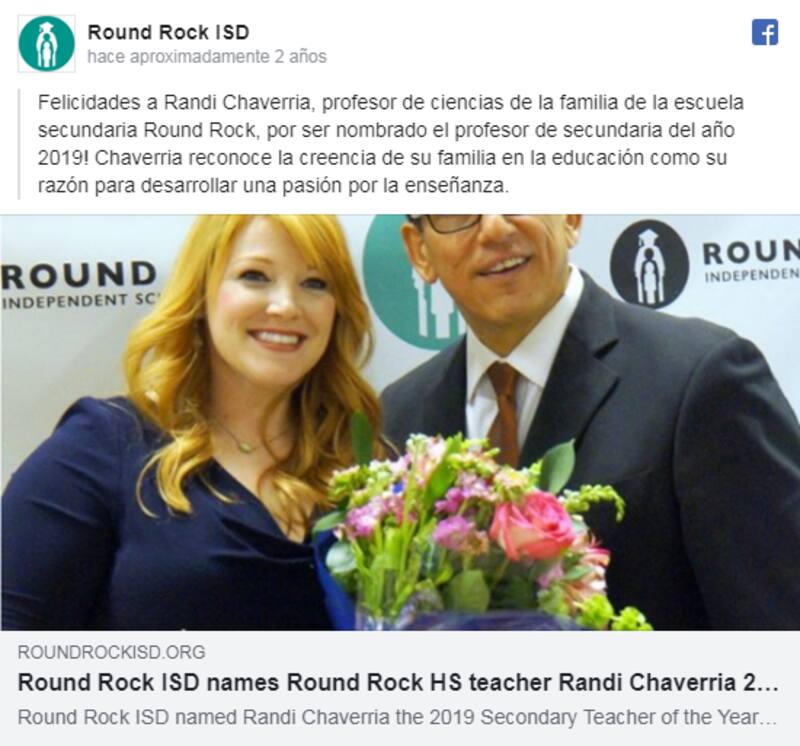 En mayo de 2019, Randi Chaverria fue galardonada como Maestra del Año y dirigió el programa Adopte un niño.