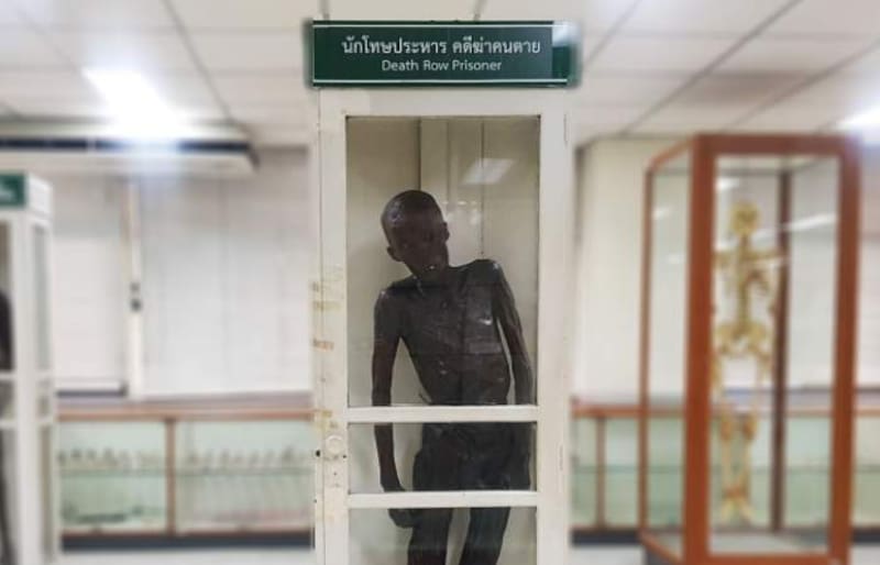 Lo más espeluznante es que el sujeto fue conservado como una momia en un museo de Bangkok y su cuerpo se exhibe a los visitantes, encerrado en una vitrina del museo forense del hospital Siriraj bajo un cartel que lo describe como "hombre que come a personas".