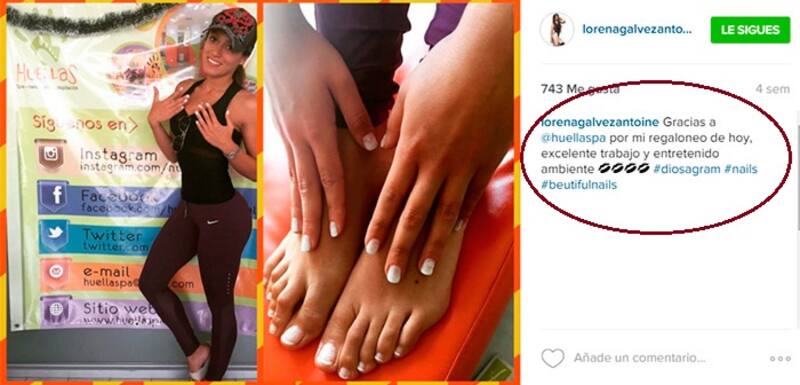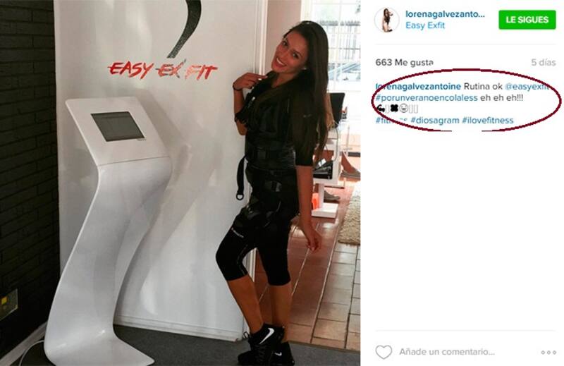 En la misma, Lorena Gálvez también se las ingenia pa' poner en la memoria de sus seguidores el spa donde se regalonea (Huellas) o la tecnología que usa pa' darle forma a su cuerada (Estimulacipon eléctrica muscular en el Easy Ex Fit).