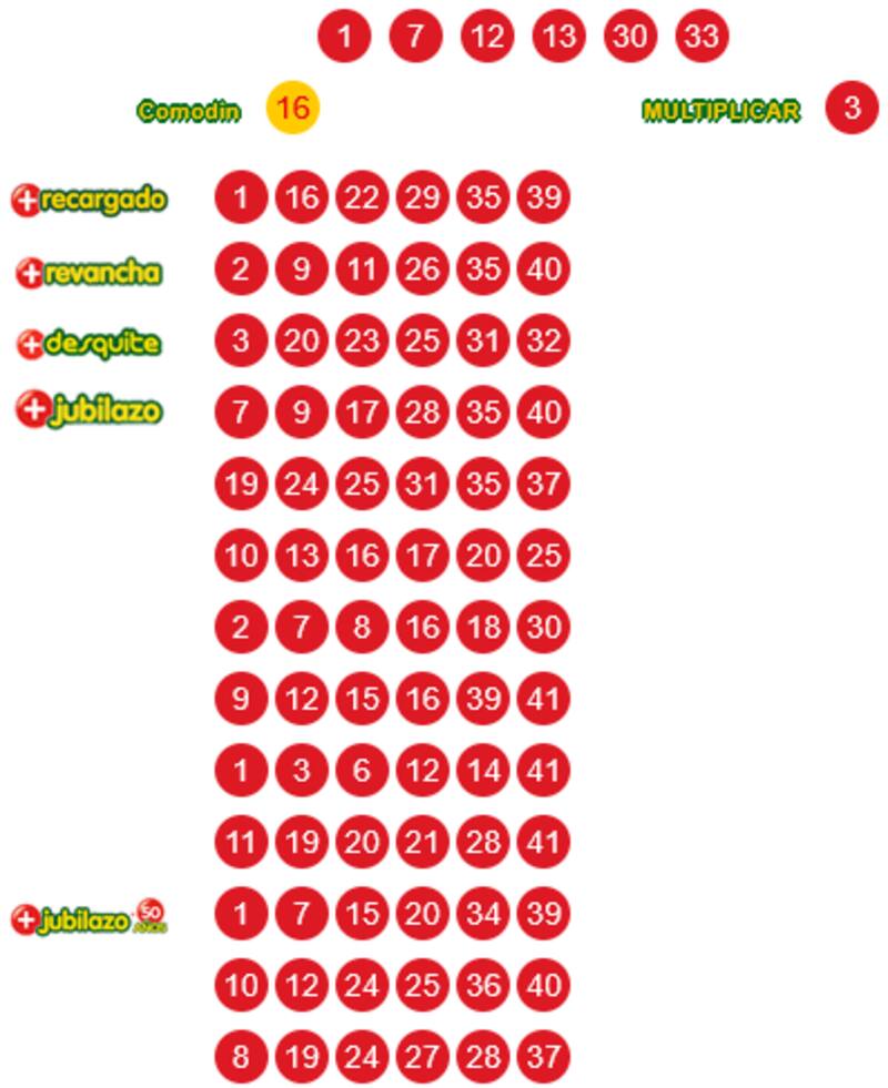 1 - 7 - 12 - 13 - 30 - 33 - Comodín 16