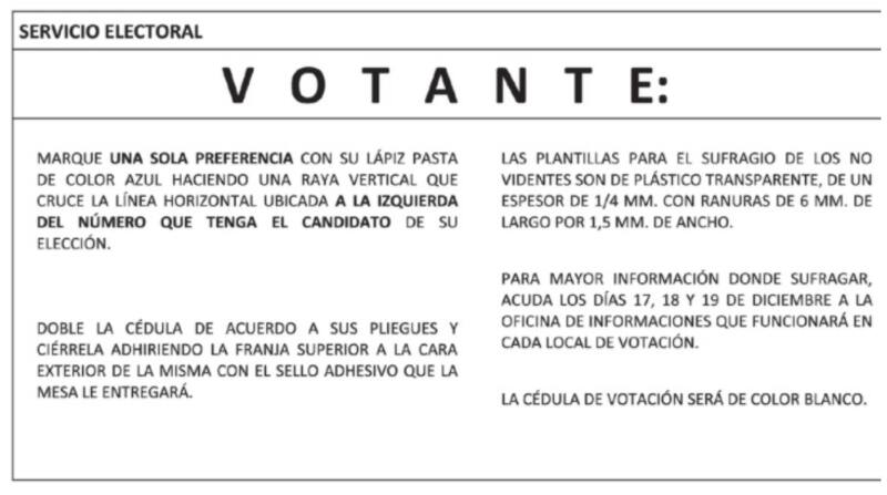 Por suerte, el tamaño de la papeleta de votación en esta oportunidad permitirá agilizar el proceso, no como pasó antes con la elección de concejales, constituyentes o los consejeros regionales...