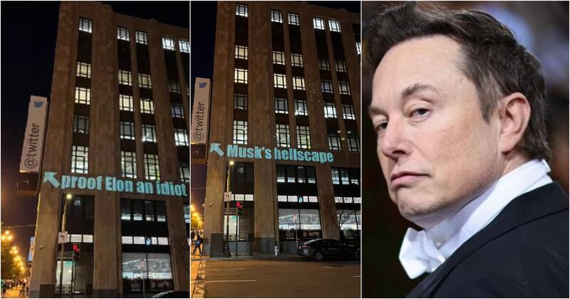 La respuesta fue inmediata, proyectaron mensajes contra el multimillonario en el exterior del edificio principal de la red social ubicado en San Francisco, Estados Unidos.