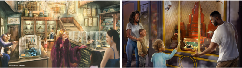 Junto con esto, es que mencionan que los asistentes podrán disfrutar de una experiencia teatral en vivo a gran escala con Le Cirque Arcanus, visitar la tienda de varitas de París, Cosme Acajor Baguettes Magique, y luego utilizarlas para interactuar con diferentes situaciones a lo largo del parque.